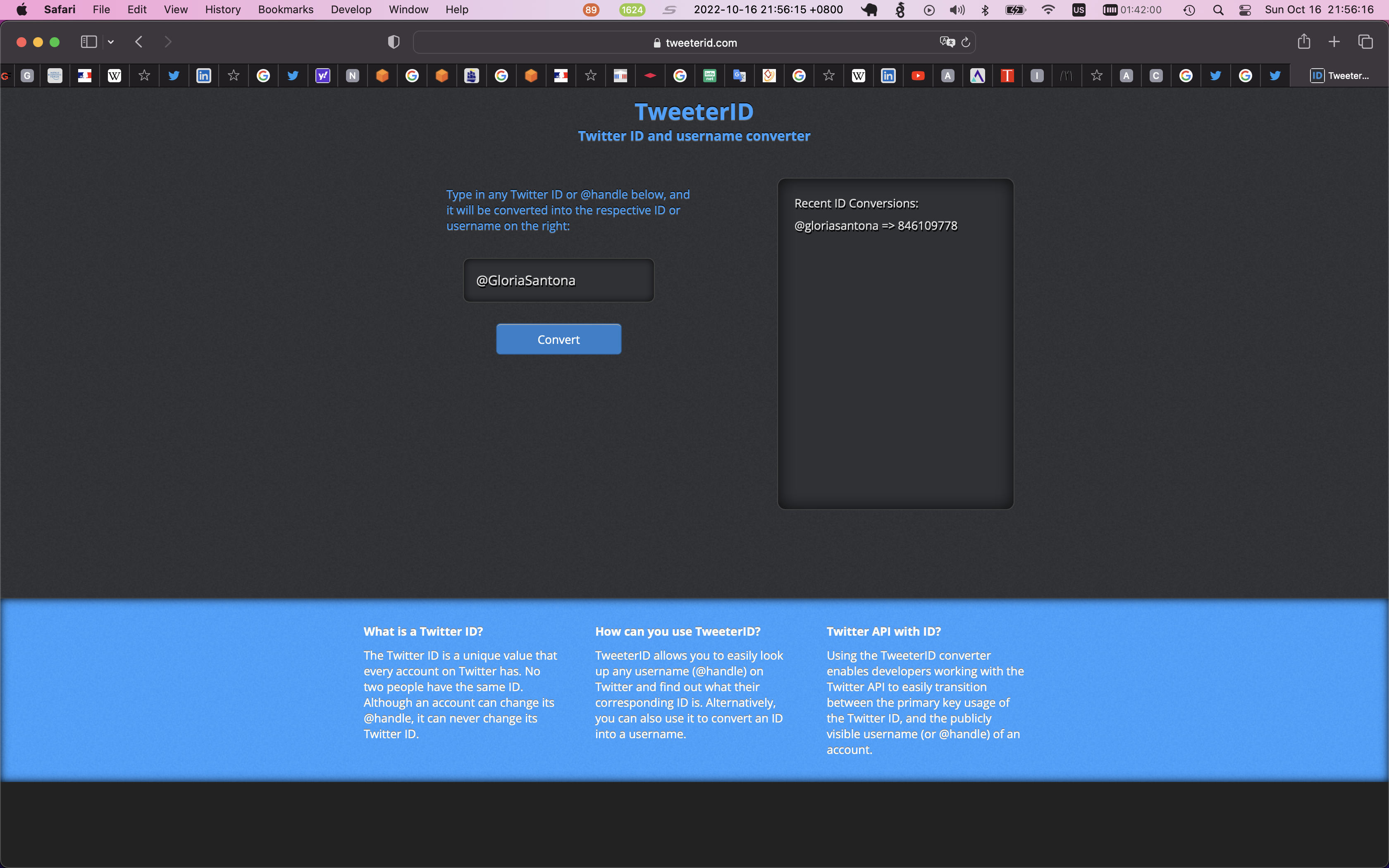 By The way, I’ve checked on TwitterID.com what’s the Twitter ID of Ms. Santona’s account @GloriaSantona. It is 846109778. I attach a screenshot for the record.